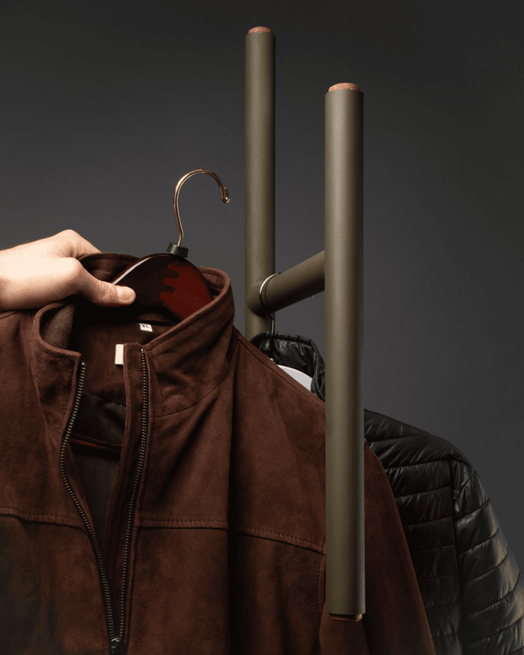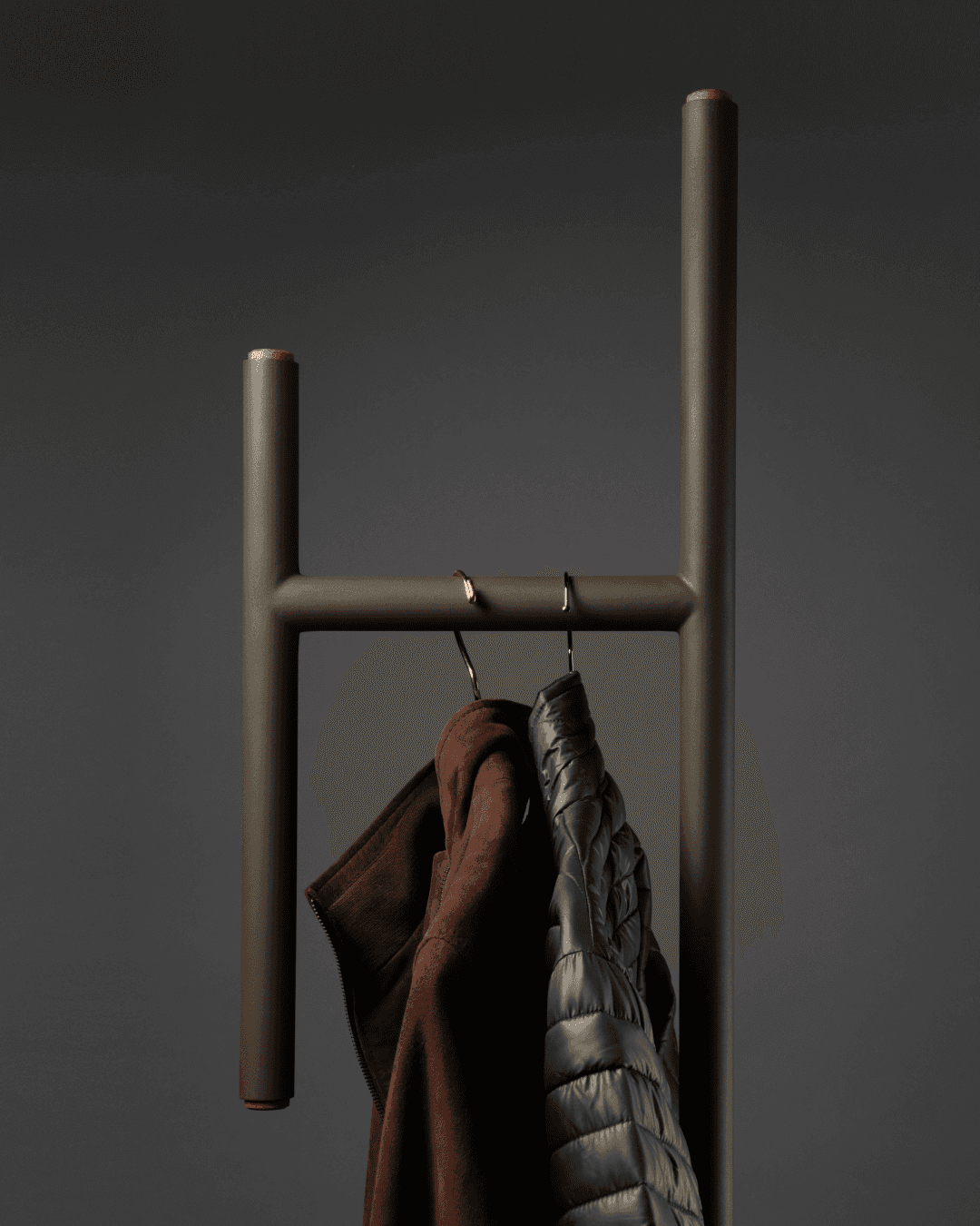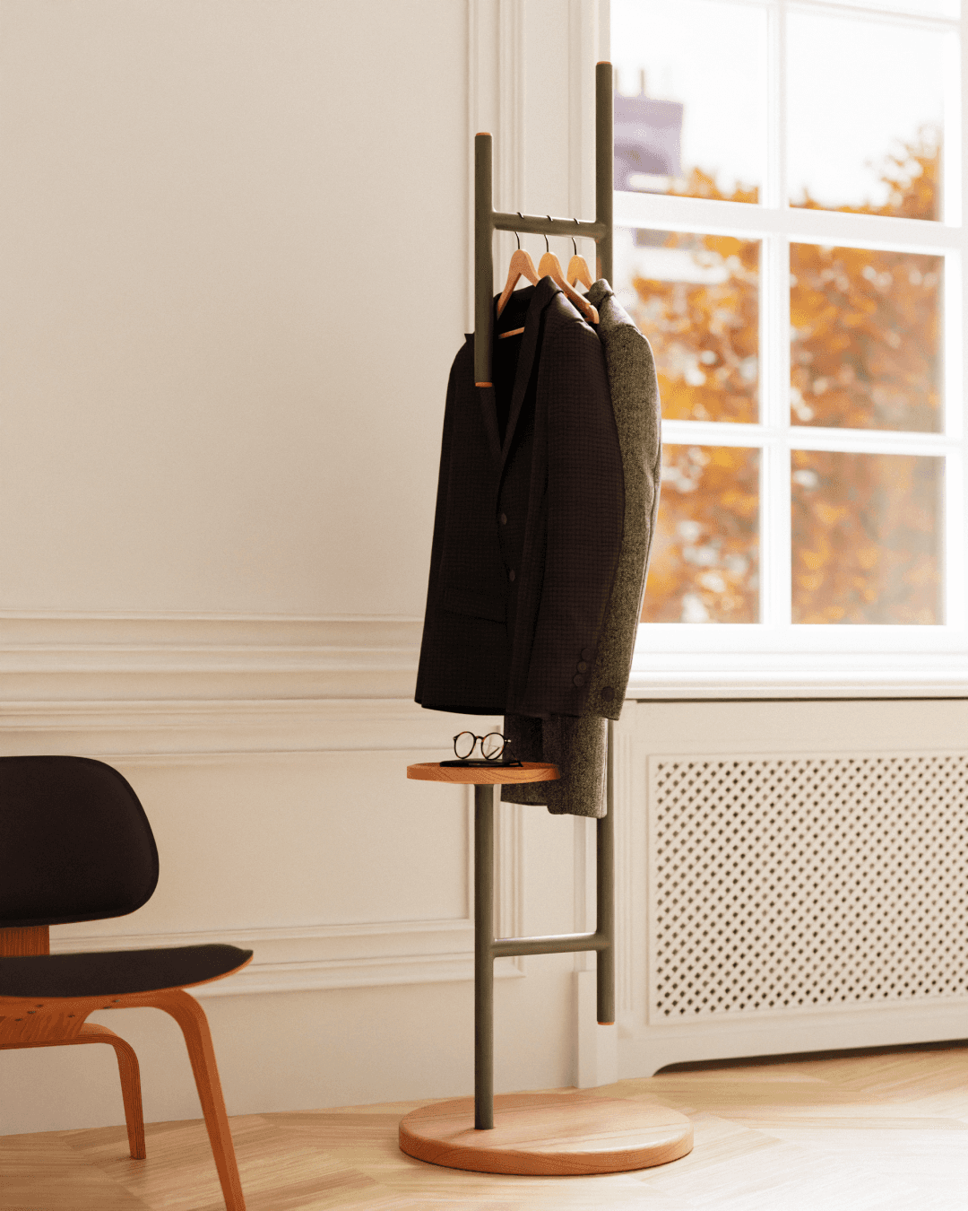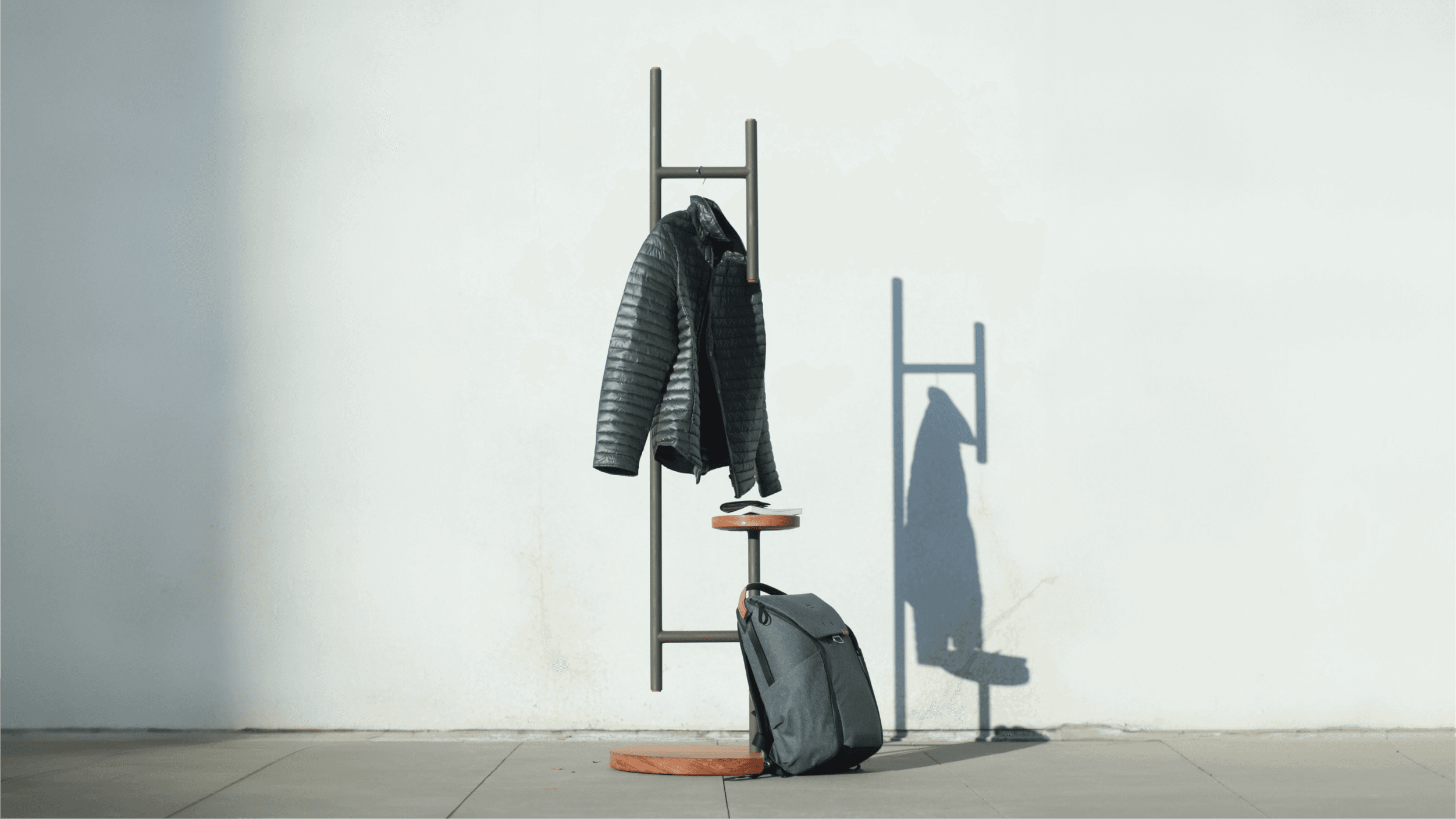 Our goal was to capture the experience of having your coat checked at a cozy theater or sophisticated restaurant. Check Coat Rack greets you with an inviting atmosphere, making you feel at home. As you hang your jacket on one of the coat hangers, you experience a sense of occasion. Check effortlessly accommodates jackets, coats, and bags while providing the perfect spot for your keys, wallet, and even a pair of sunglasses.